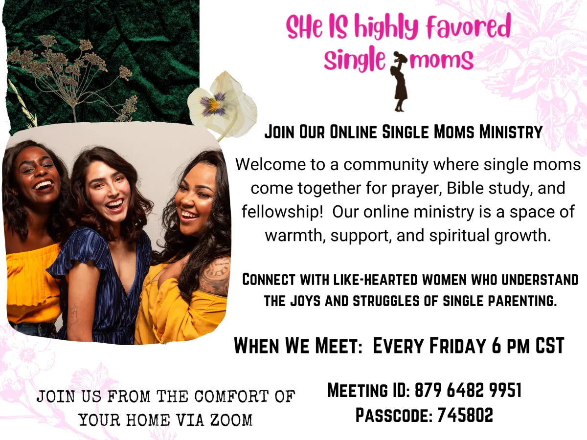 At She Is Highly Favored, we host a variety of events virtually, locally, nationally, and internationally from conferences, retreats, tours, bible study, and brunches. Our mission is to create a supportive network where single moms find strength, inspiration, and practical assistance, all rooted in the understanding that they are deeply favored by God.
